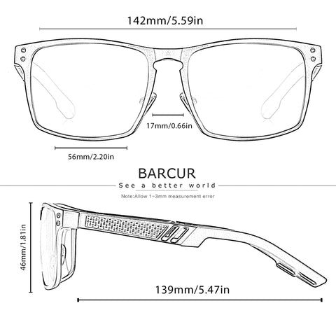 BARCUR Al-Mg Square Sunglasses Polarized Sport 8580Pro